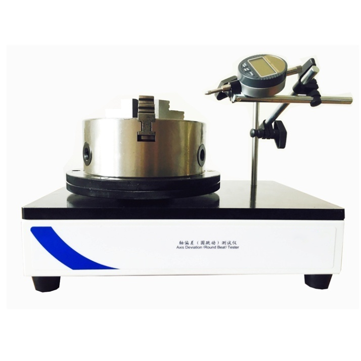 將瓶底夾持固定在旋轉(zhuǎn)盤上,使瓶口與千分表測(cè)量頭接觸,旋轉(zhuǎn)360°讀取*大值和*小值,二者之差的1/2即為垂直軸偏差(圓跳動(dòng))數(shù)值。
